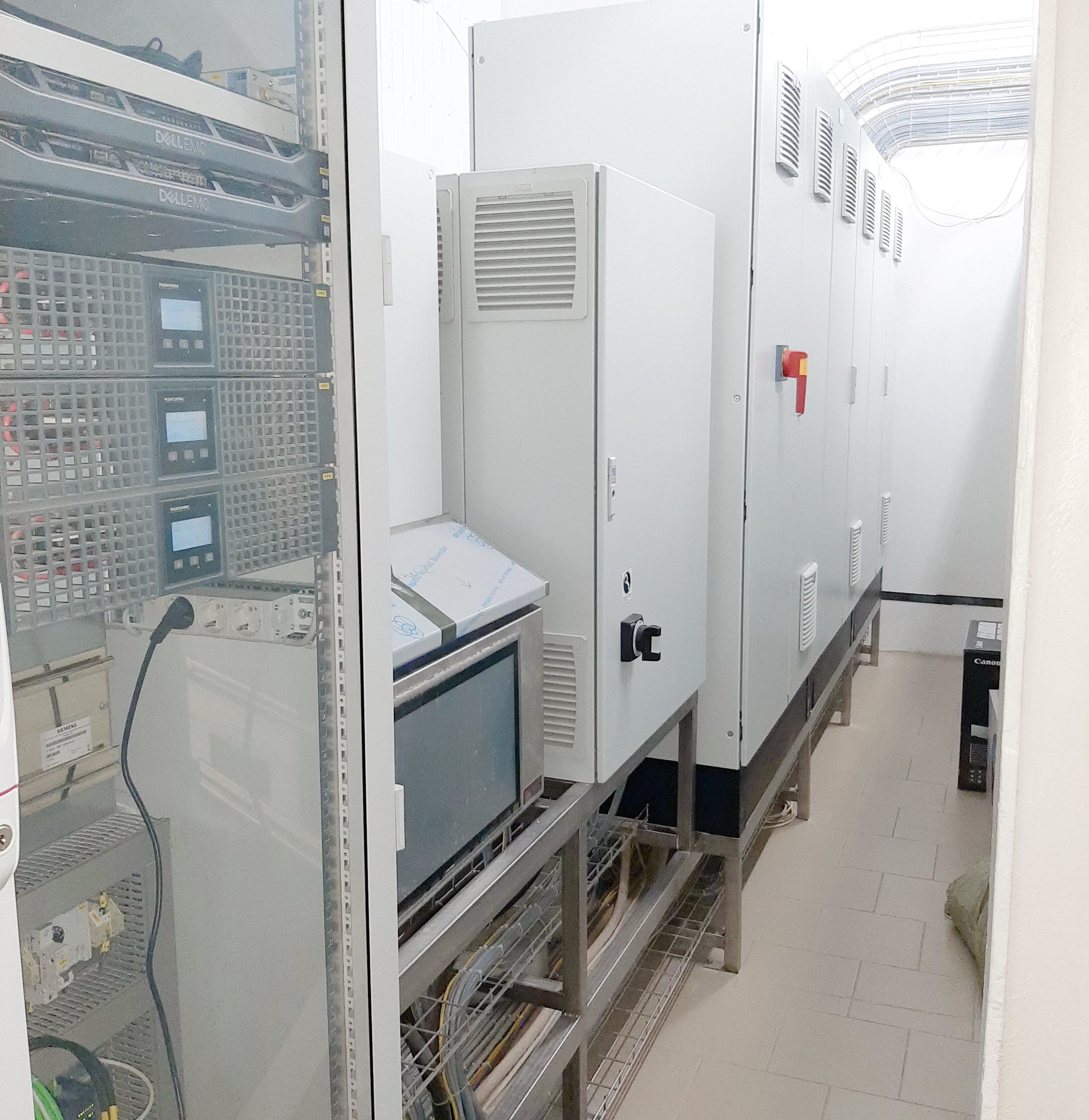 The control system is based on Siemens S7-1500 PLC, Siemens Siamatic TP 1200 control panels, two redundant servers and two operator client stations.