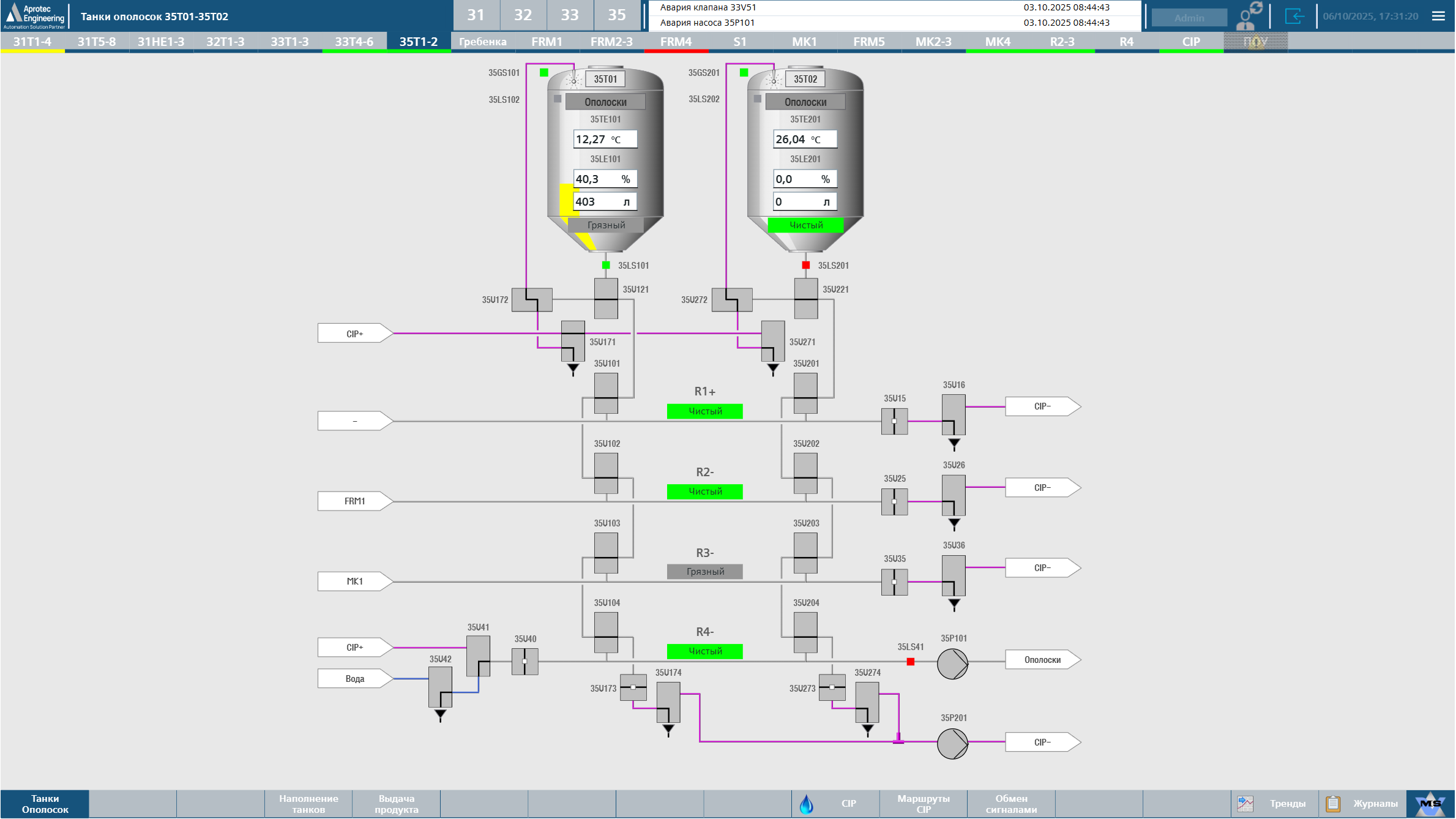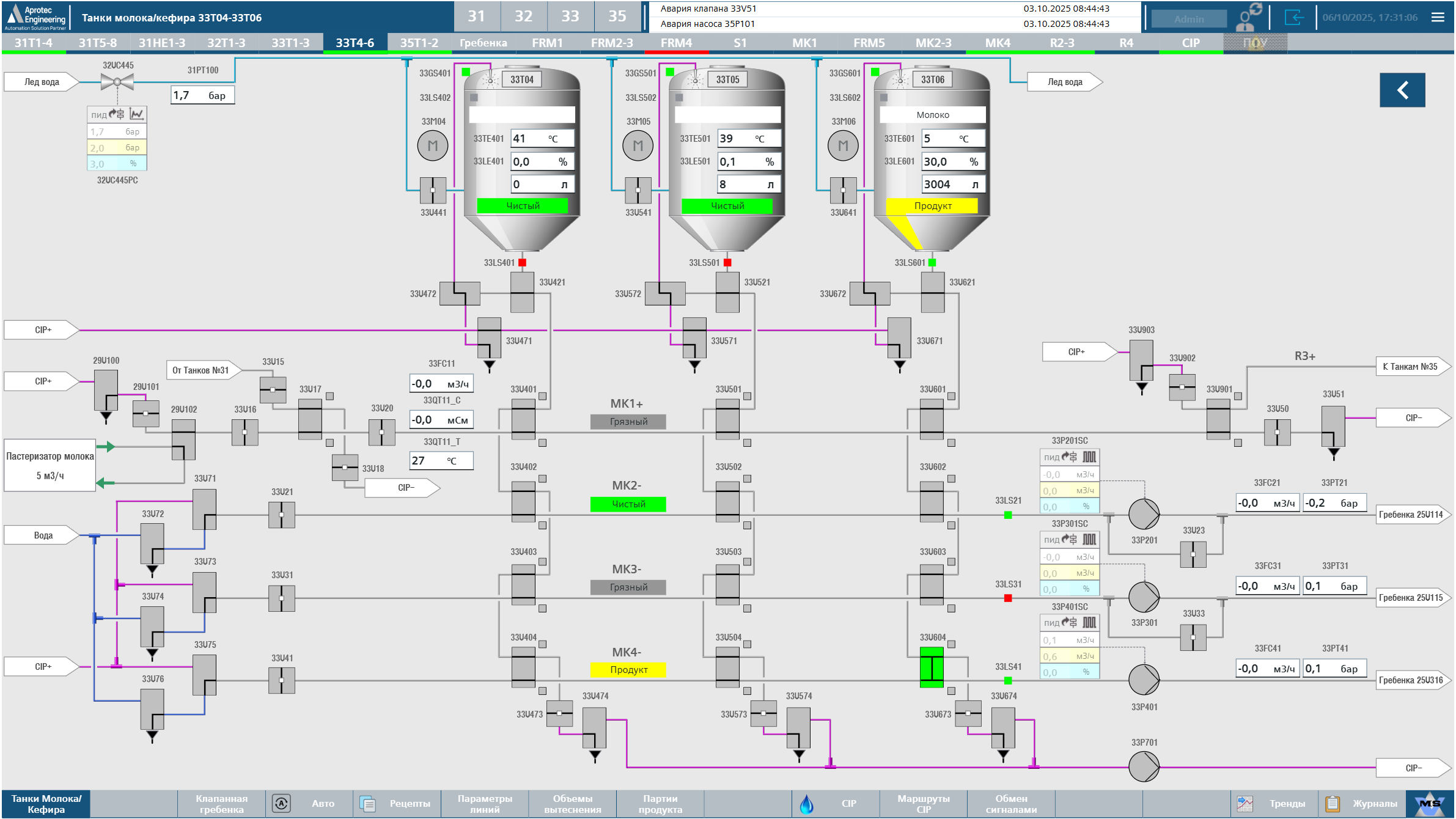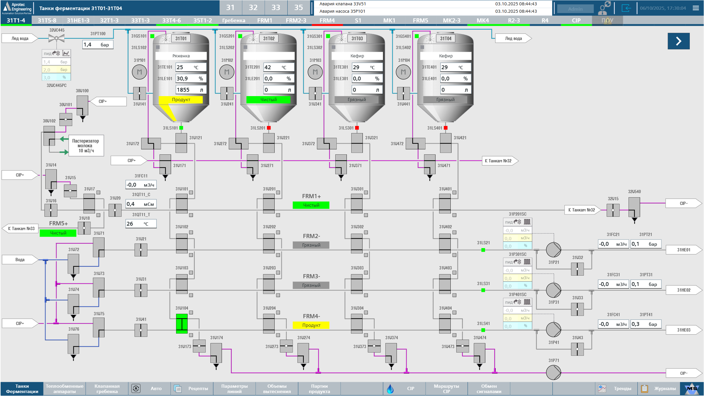 Компания Aprotec Engineering внедрила комплексную систему автоматизации ферментации на современном молочном предприятии Казахстана. Проект включает управление 19 ферментерами различного объёма, интеграцию линий от пастеризационно-охладительных установок (ПОУ) и подключение упаковочных автоматов Galdi, FinnPack и Flex Tetra Pak.